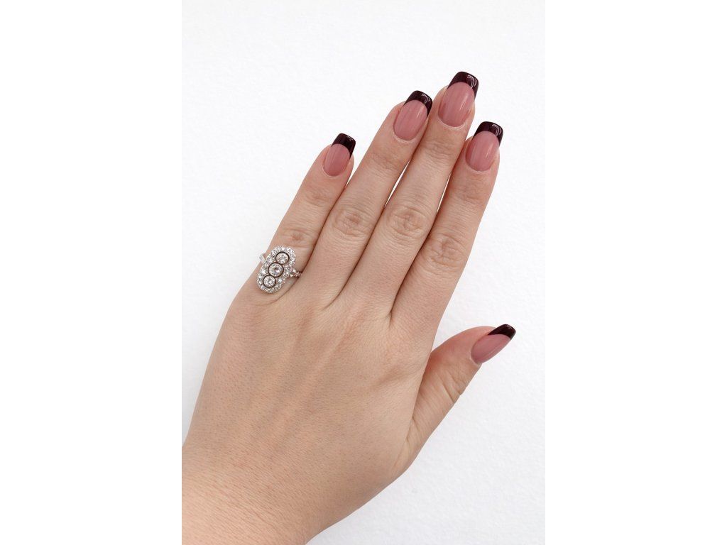 Diamantový Art Deco prsten z bílého zlata s výjimečně bílými diamanty 0,87 ct - certifikováno