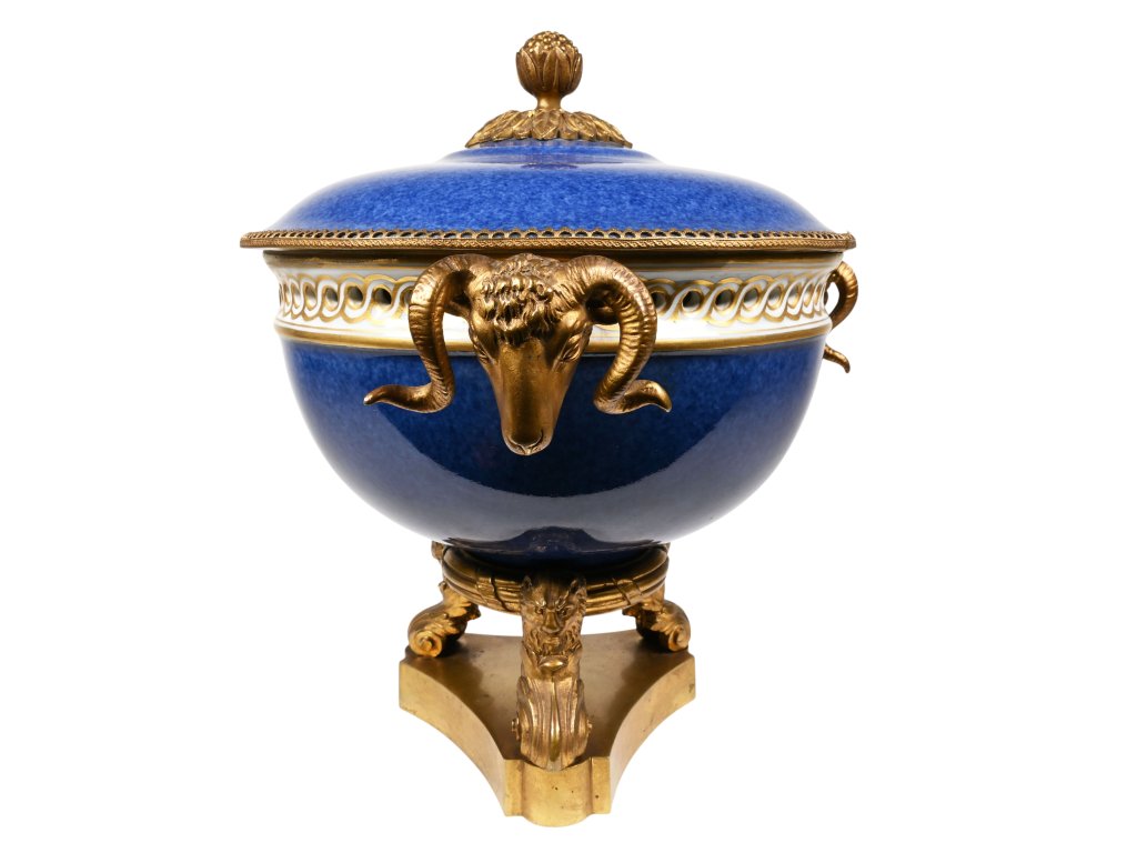 Materiál: porcelán, zlacený bronzRozměry: výška 28 cm, šířka 24 cmZnačení: neznačenoStav: výbornýObdobí: kolem roku 1850