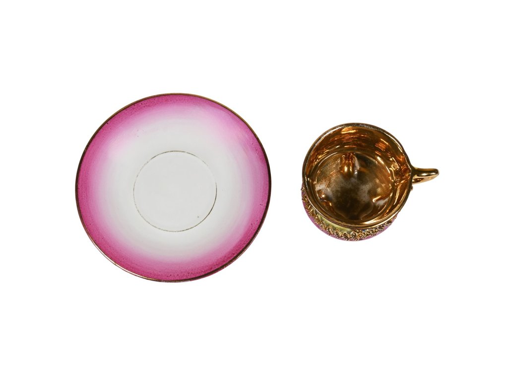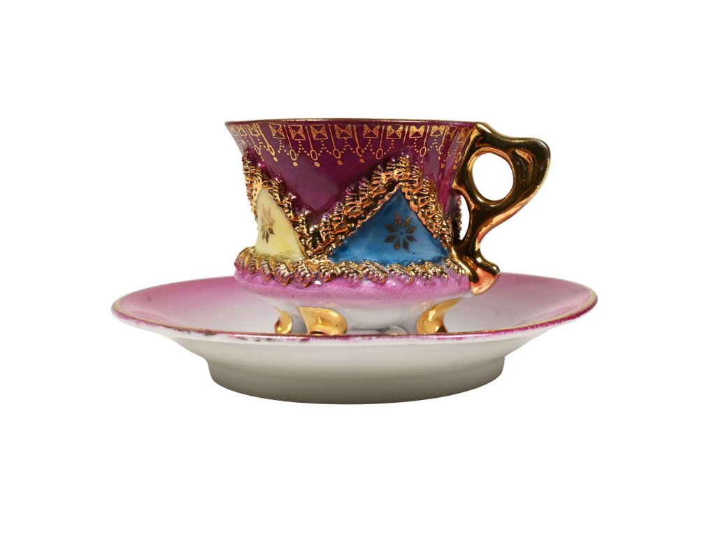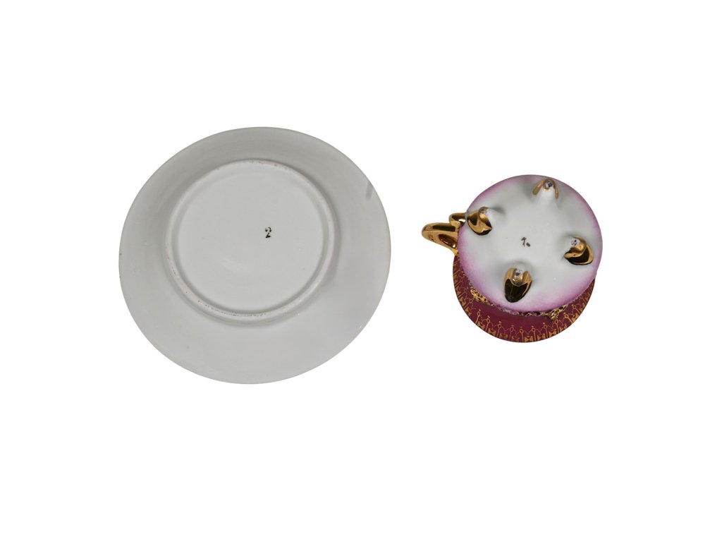 Materiál: porcelán Rozměry: výška hrníčku 4,5 cm, průměr hrníčku 5,5 cm, průměr talířku 10,4 cm Stav: výborný