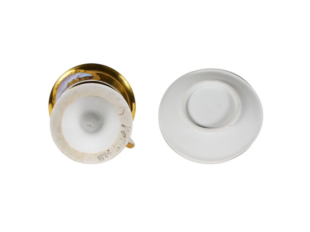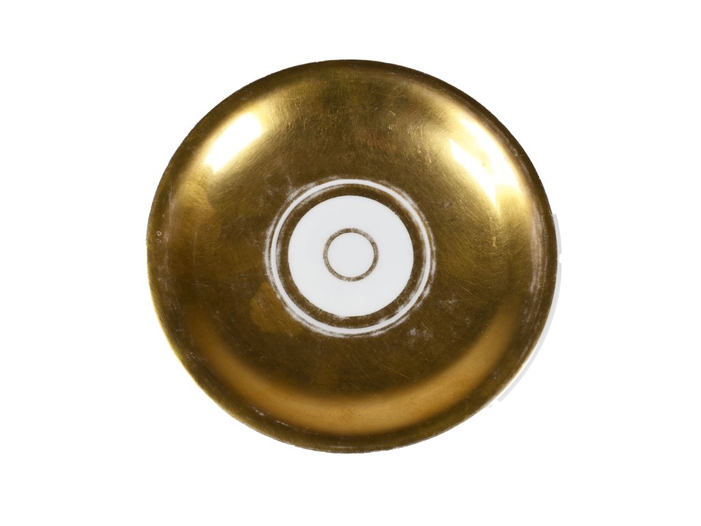 výška 10,5 cm, průměr 7,5 cm, průměr talířku 14 cm