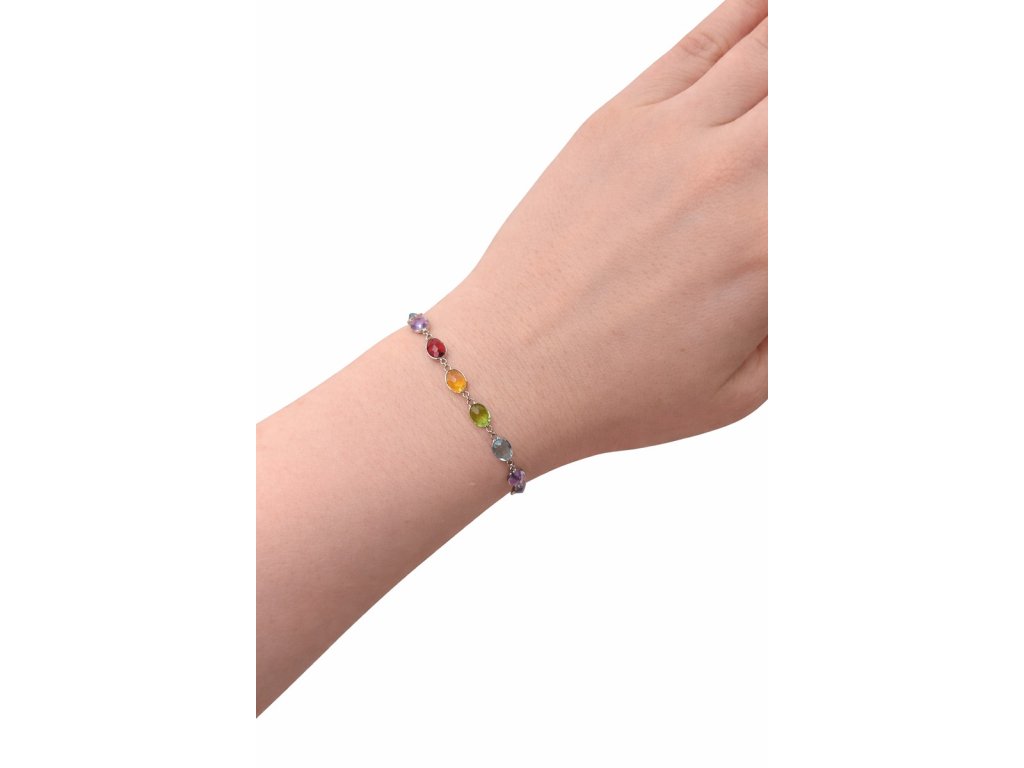 Náramek z bílého zlata s přírodními drahokamy - ametyst, citrín, topaz, peridot, granát