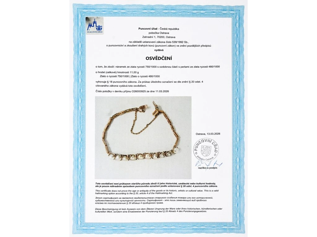 - osvědčení Puncovního úřadu České republiky