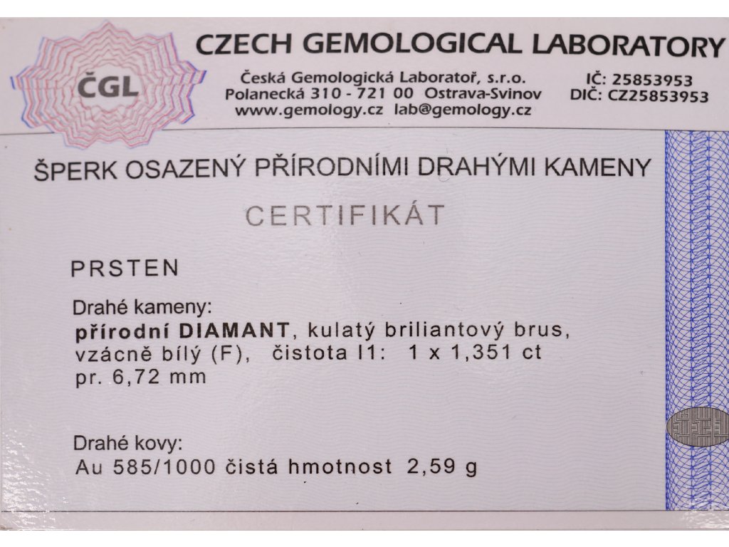 Doklady: • Certifikát z gemologické laboratoře je součástí šperku