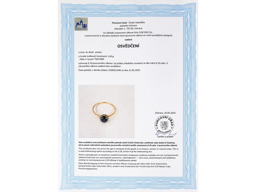 - 1 ks přírodního safíru, celkem 0,40 ct