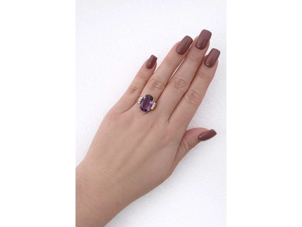 Prsten ze žlutého zlata s přírodním ametystem 11,30 ct a diamanty 0,27 ct - certifikováno