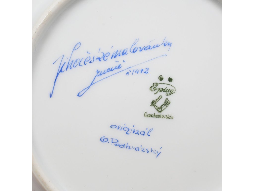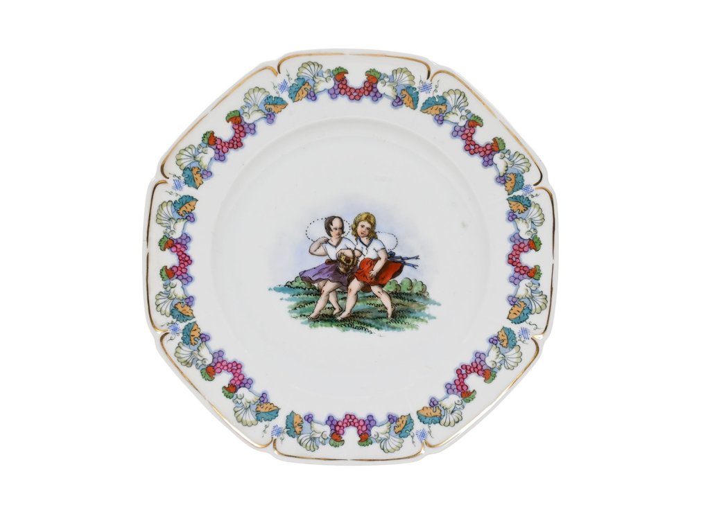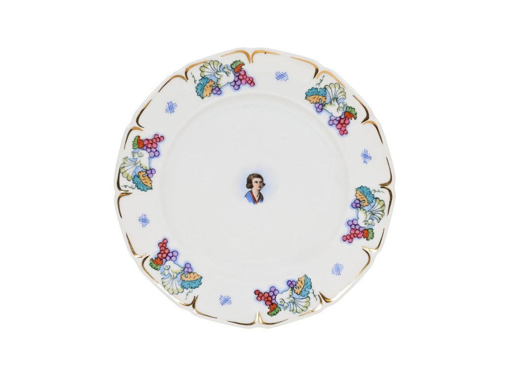 Materiál: porcelán, malováno (7 ks)Rozměry: průměr velkého talíře 23 cm, malého talíře 17,2 cmZnačení: anoStav: výborný