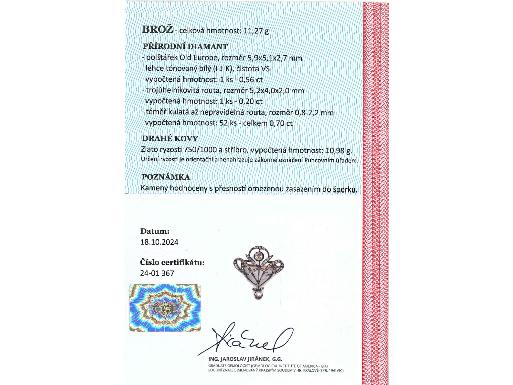 přírodní diamant 1 ks 0,56 ct, polštářek Old Europe, lehce tónovaný bílý (I-J-K), čistota VS, rozměr 5,9x5,1x,2,7 cmm