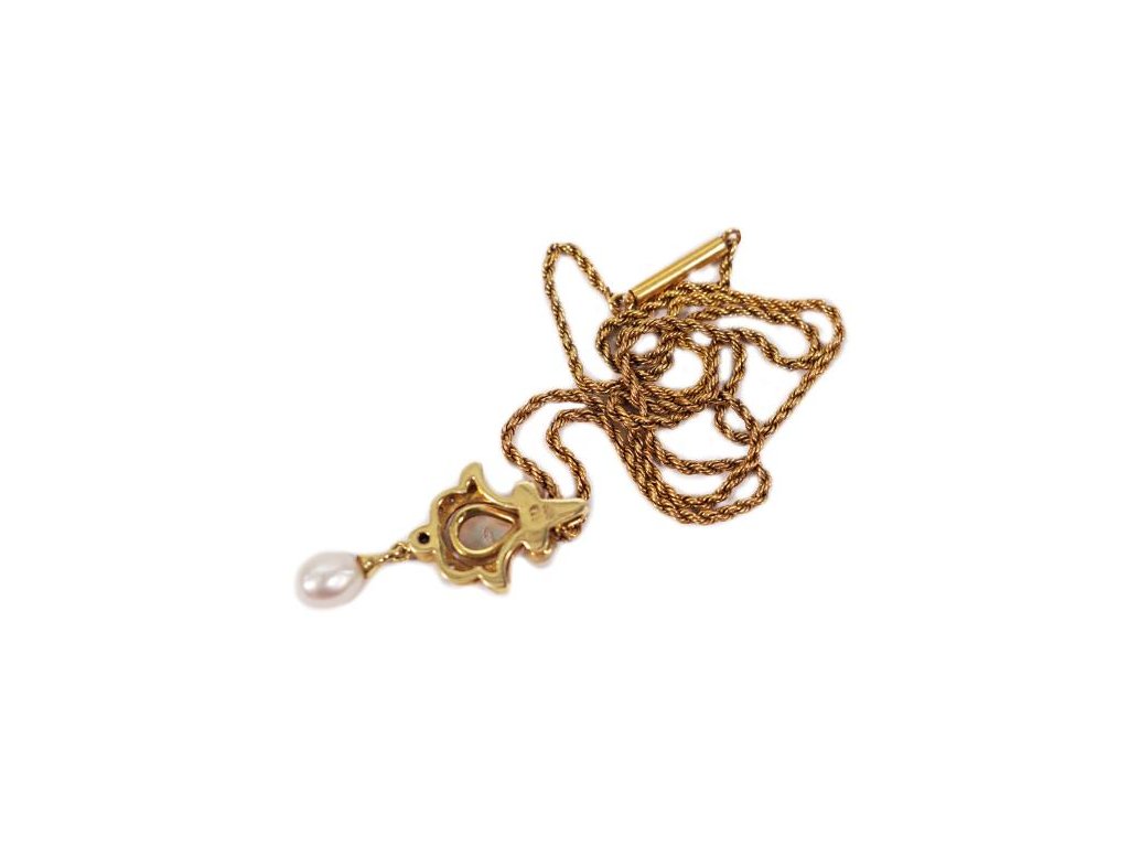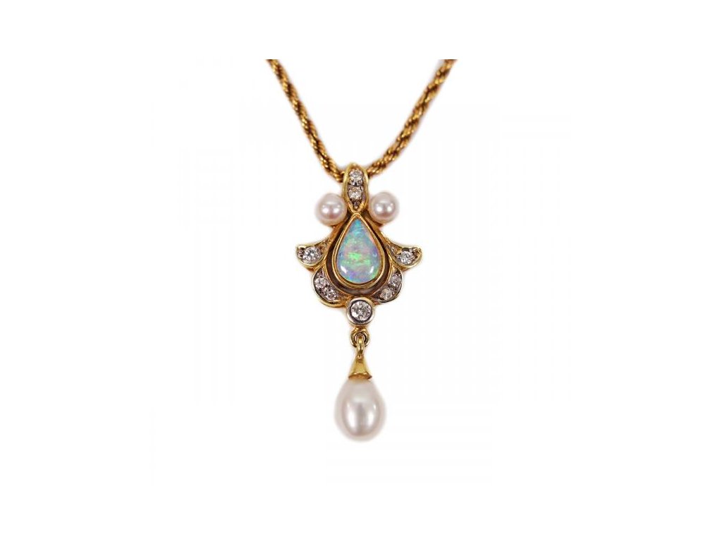 Zlatý náhrdelník s opálem, perličkami a diamanty