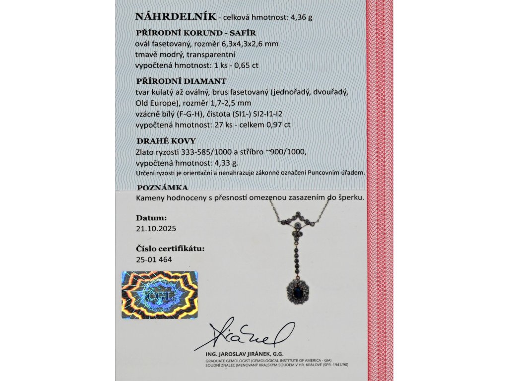 - certifikát gemologické laboratoře je součástí šperku