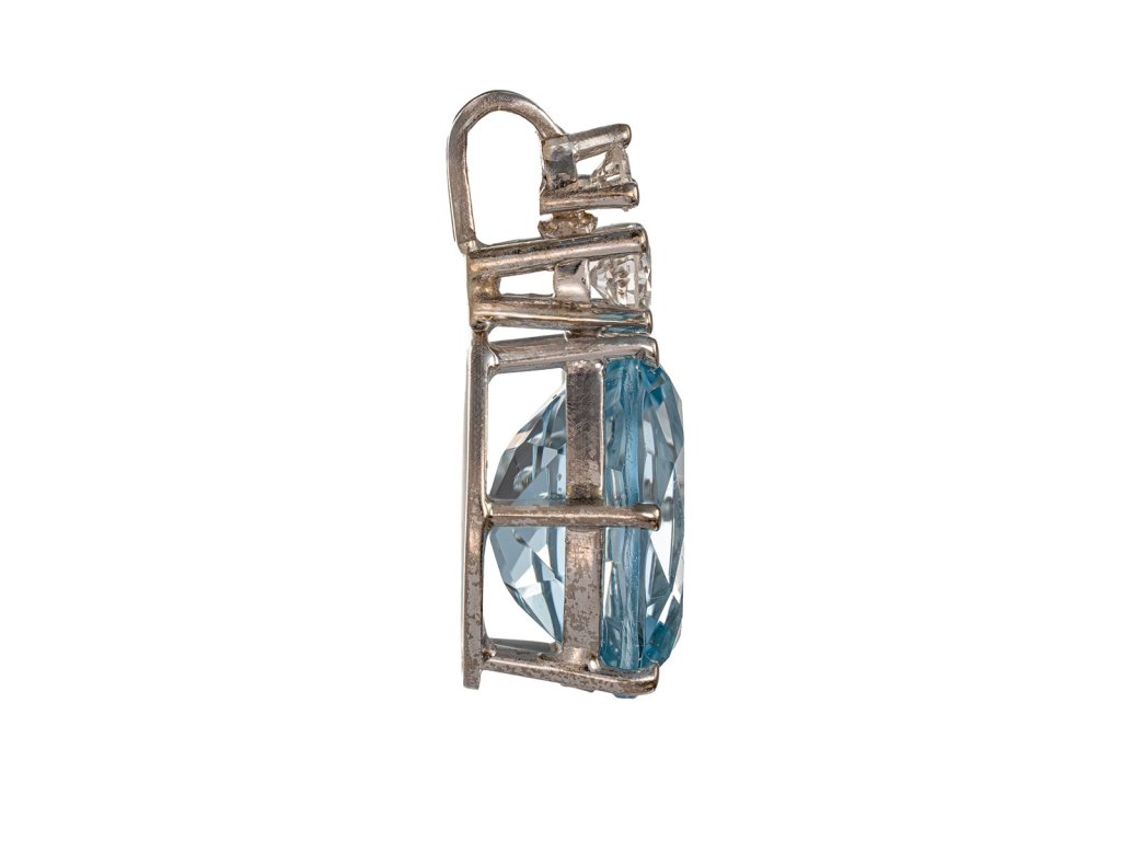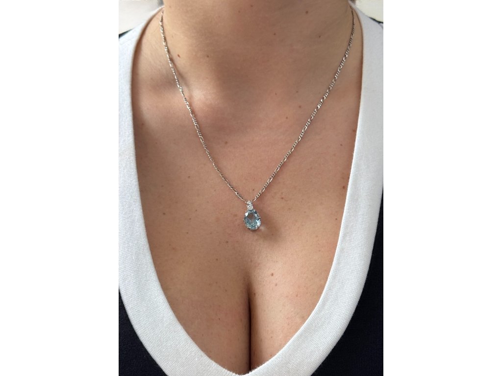 Zlatý přívěsek s přírodním akvamarínem a diamanty