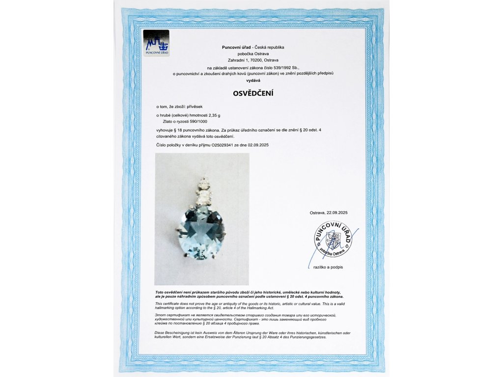 osvědčení puncovního úřadu