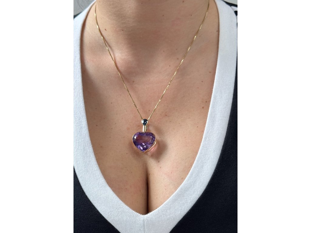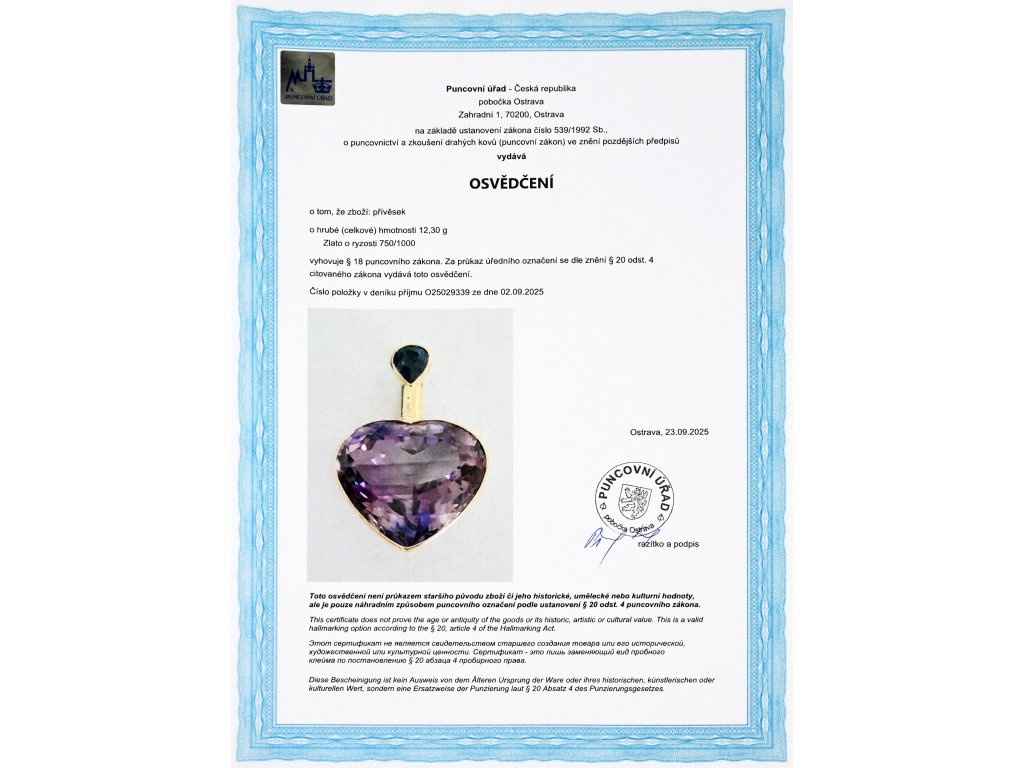 Zlatý přívěsek s přírodním ametystem a přírodním safírem