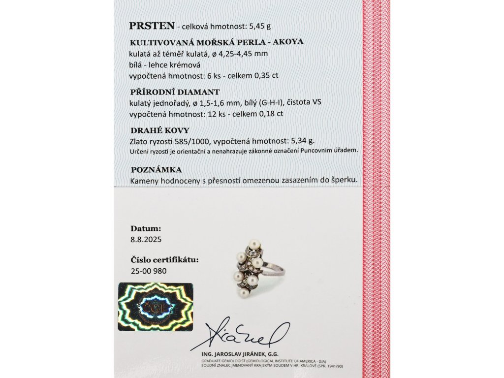 • 6 ks kultivovaných mořských perel Akoya, celkem 0,35 ct