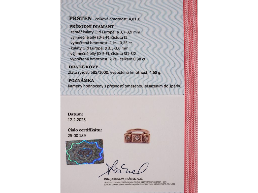 přírodní diamant Old Europe 2 ks 0,38 ct, výjimečně bílý /D-E-F-/, čistota SI1-SI2