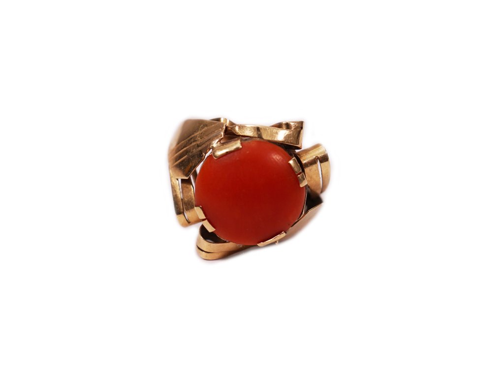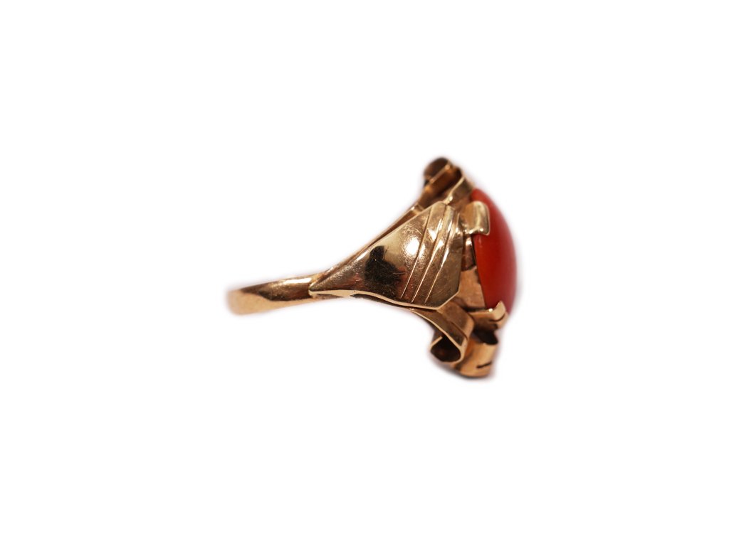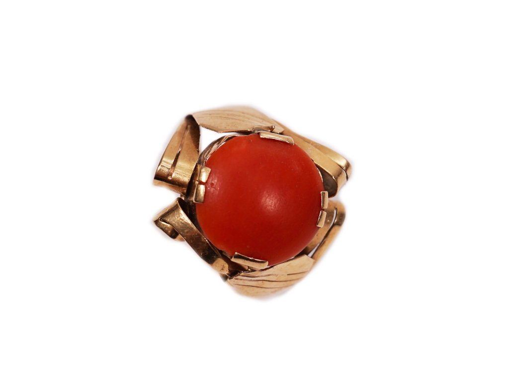 Zlato o ryzosti 583/ 1000Celková hmotnost 3,52 gr. 1950, dobrý stavPřírodní korálVelikost prstenu 54