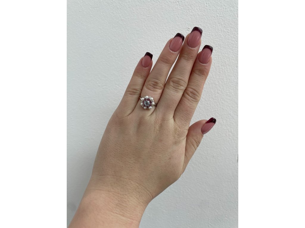 Materiál: bílé zlato o ryzosti 585/1000Hmotnost: 2,66 gRozměry: velikost prstenu 55, průměr hlavy 1,3 cm