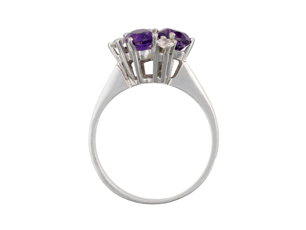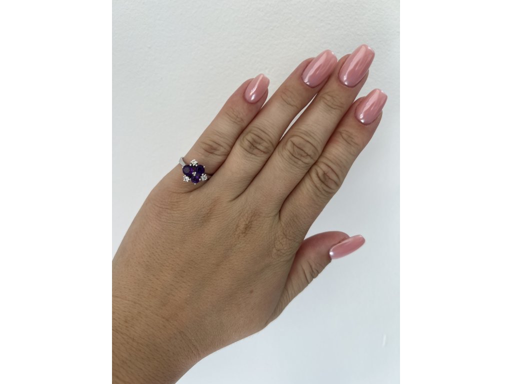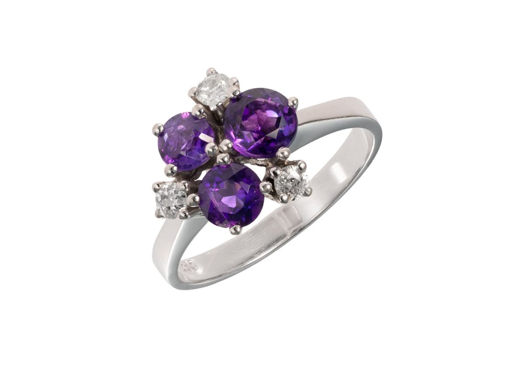 Zlatý prsten s přírodními ametysty a diamanty