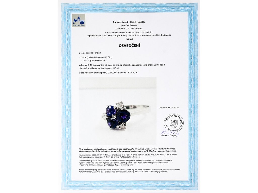 osvědčení puncovního úřadu