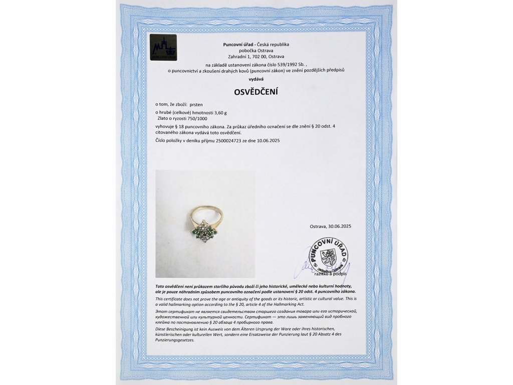 osvědčení puncovního úřadu