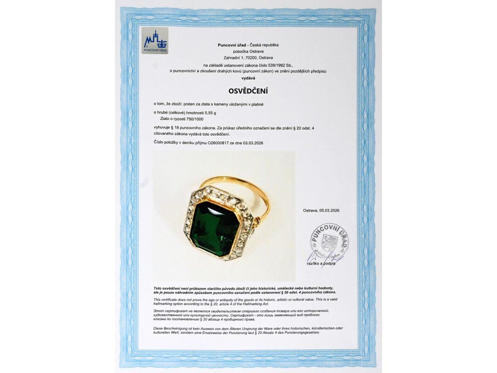 • osvědčení Puncovního úřadu České republiky