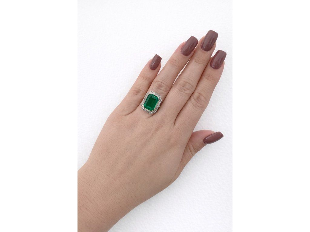 Art Deco prsten ze žlutého zlata s berylovým dubletem 7,35 ct a diamanty 0,26 ct - certifikováno