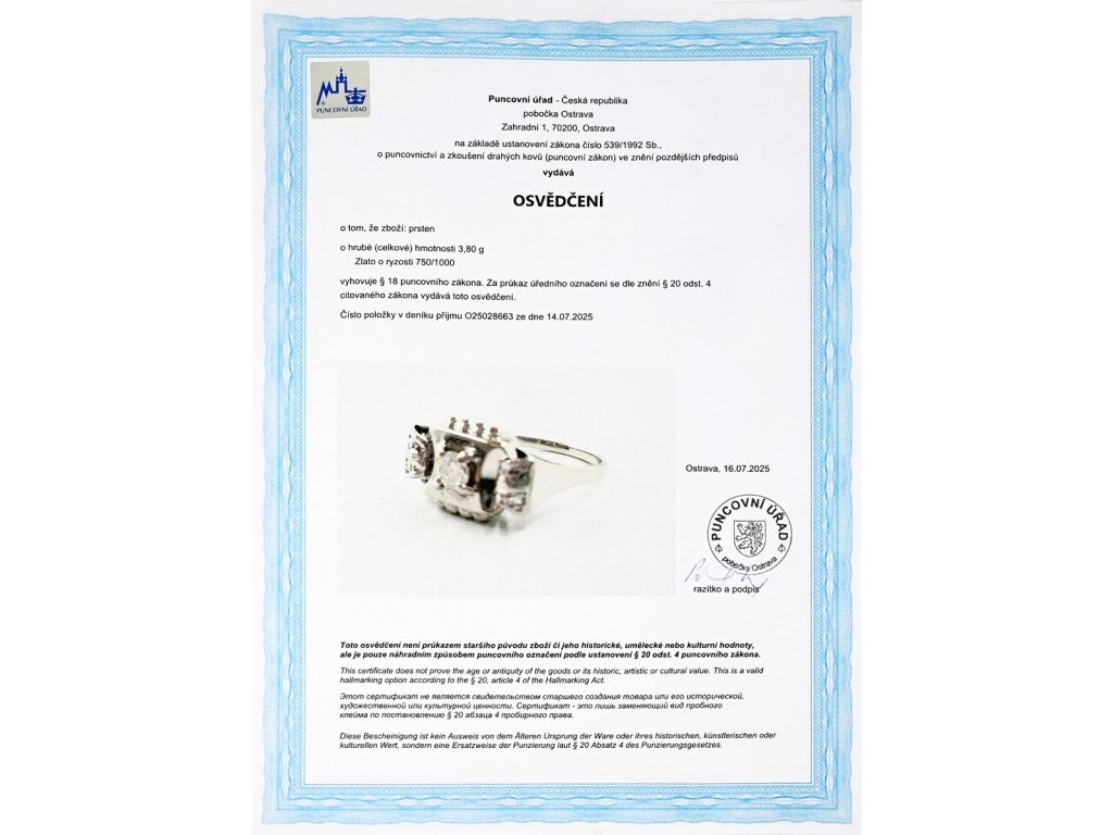 osvědčení puncovního úřadu